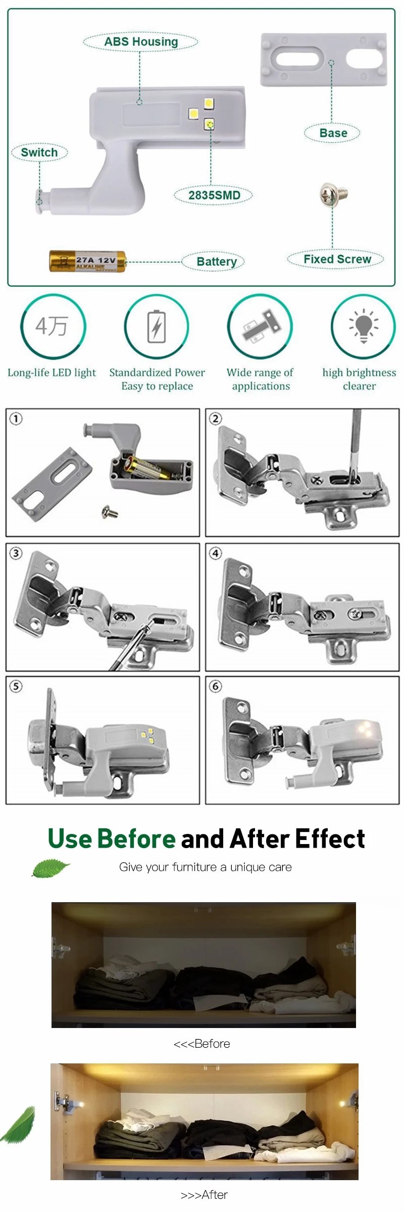 • The cabinet light has 3pcs led beads and it is operated by 23A 12V battery(Not Included)