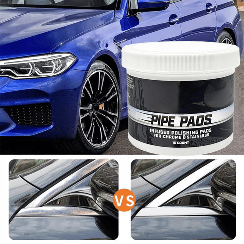 Step 1: 👉 Take one pre-saturated Pipe Pad and apply it to your clean, dry surface. 👉 Work in circular motions to break down oxidation, then finish in linear motions for a consistent shine. 👉 Let dry for about 3 minutes.
