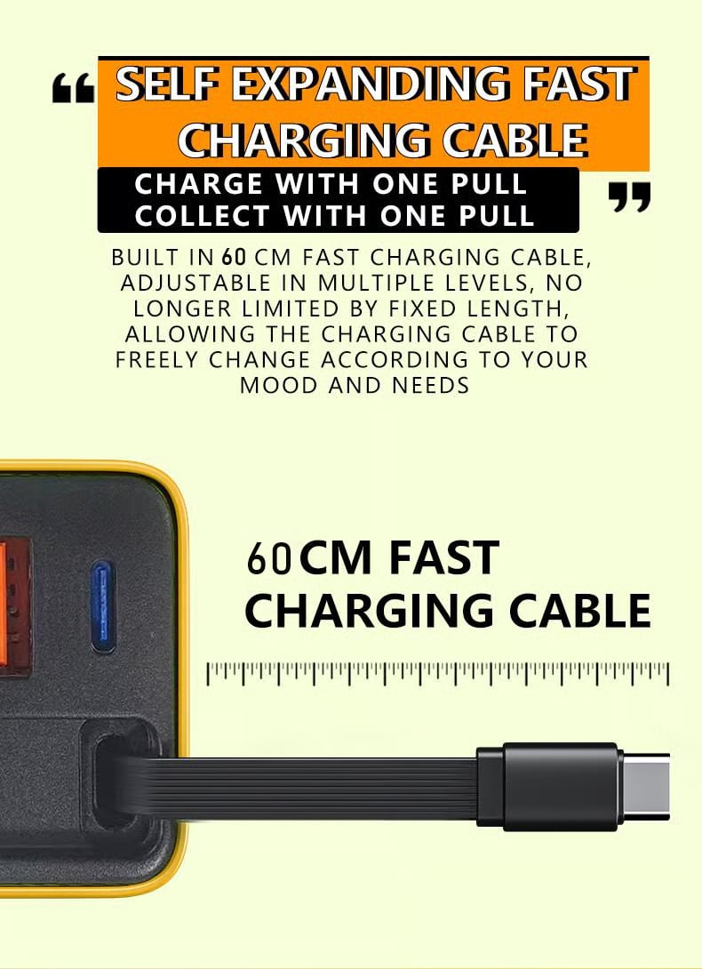 Charge with one pull collect with one pull built in 60CM fast charging cable adjustablein multiple levels,no longer limited by fixed length,allowing the charging cable to freeLly change according to your mood and needs😃